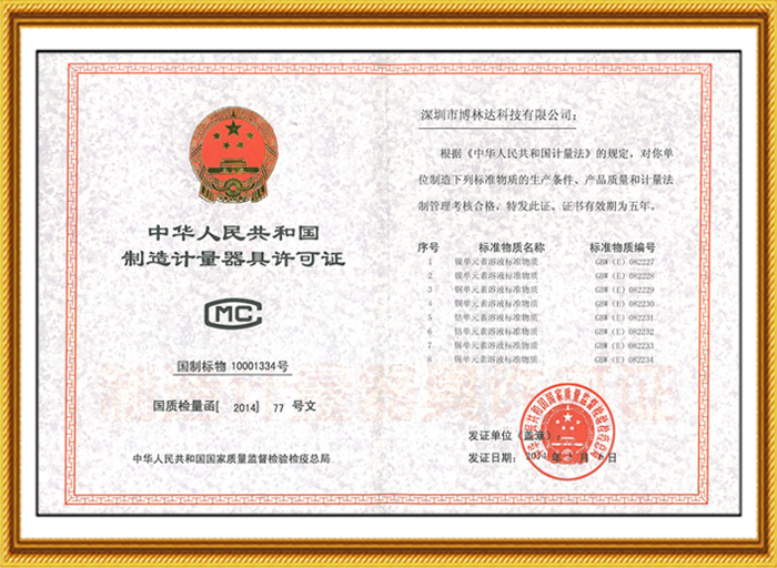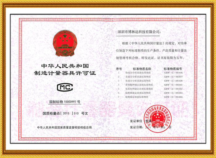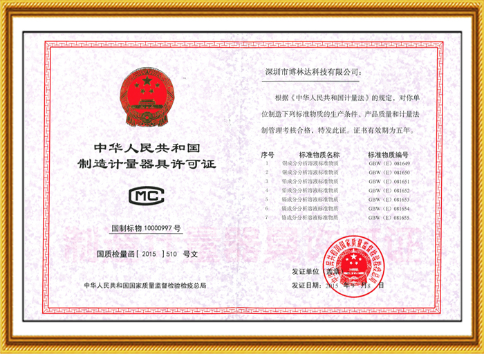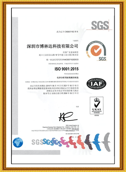 十幾年來(lái),博林達(dá)不僅在標(biāo)準(zhǔn)物質(zhì)領(lǐng)域持續(xù)榮獲國(guó)家級(jí)的資質(zhì)認(rèn)證,2017年10月博林達(dá)更榮獲了“國(guó)家高新技術(shù)企業(yè)”,該項(xiàng)榮譽(yù)是政府對(duì)博林達(dá)的產(chǎn)品領(lǐng)域、研發(fā)能力、專利成果、研發(fā)投入、科技管理水平和人才結(jié)構(gòu)的充分肯定,是又一個(gè)高含金量的國(guó)家級(jí)的資質(zhì)認(rèn)證,同時(shí)也是博林達(dá)發(fā)展史上一座輝煌的里程碑!